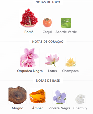 No fundo, âmbar, violeta e madeira de mogno garantem profundidade, excelente fixação e um rastro inesquecível.