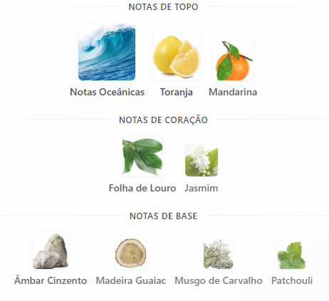 A abertura traz grapefruit e notas marinhas, proporcionando um frescor revigorante e envolvente.