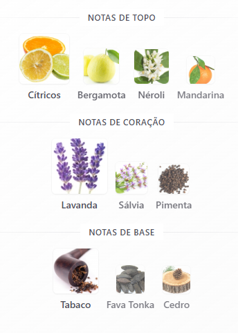 No fundo, tabaco, fava tonka e cedro garantem profundidade, masculinidade e excelente fixação.