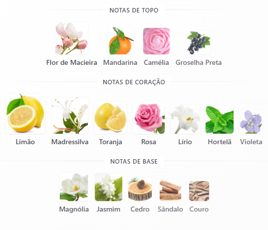 No fundo, magnólia, cedro e sândalo proporcionam conforto, suavidade e excelente fixação.