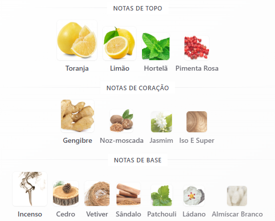 No fundo, sândalo, incenso e cedro garantem profundidade, excelente fixação e um rastro marcante.